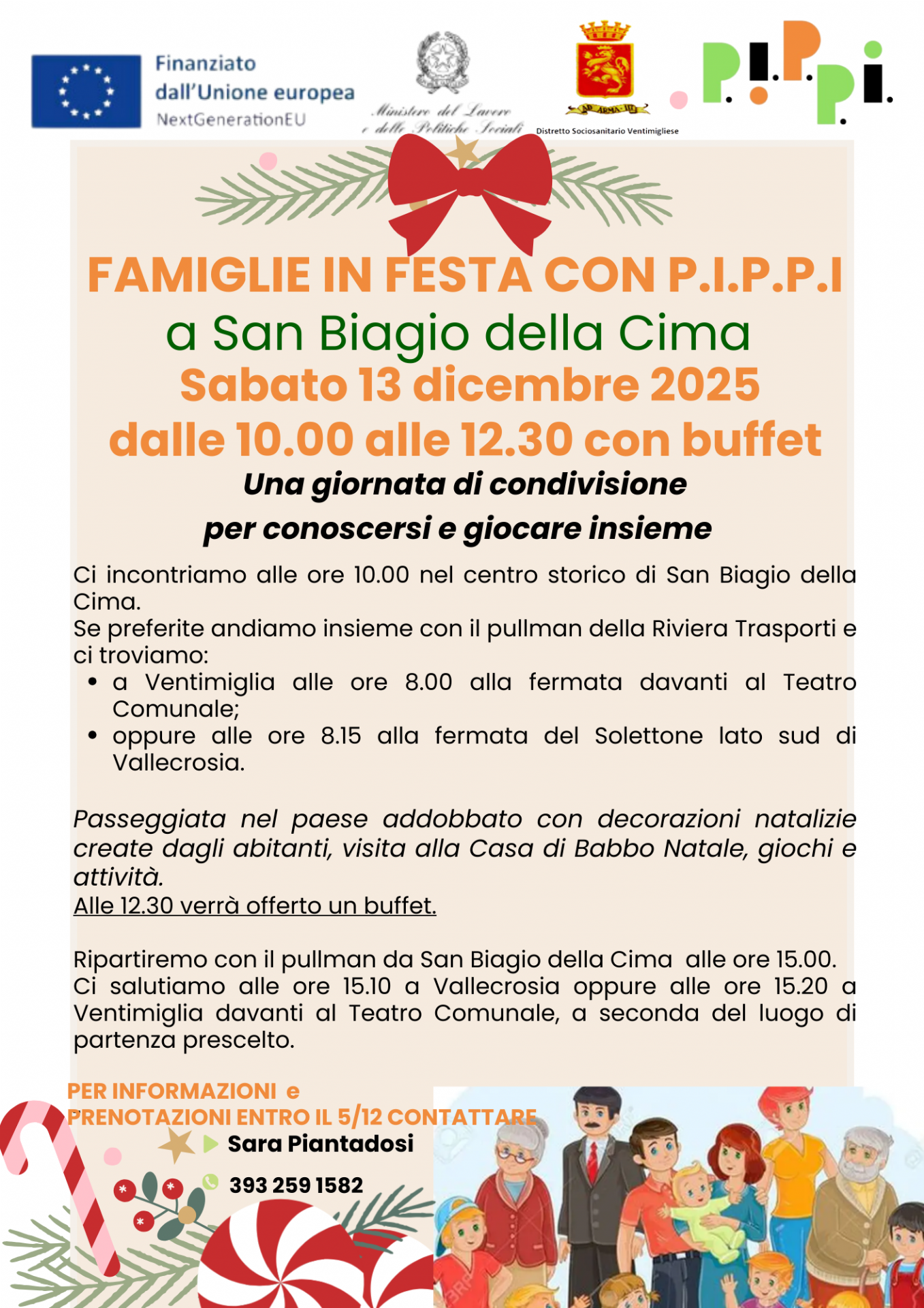 "Invitiamo le famiglie a partecipare alle prossime attività organizzate sul territorio, grazie ai fondi del Programma PIPPI PNRR. Queste iniziative sono in programma per il 6 e il 13 dicembre