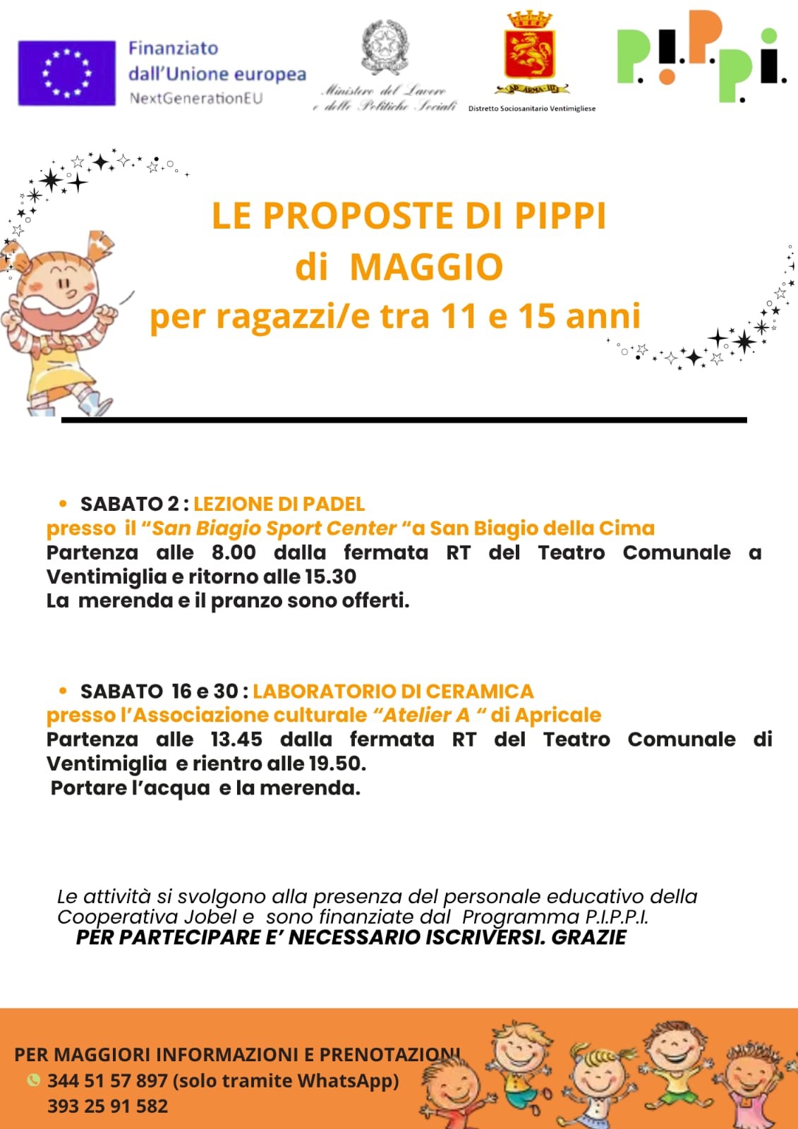 Per il mese di maggio siamo a proporre alcune attività rivolte ai ragazzini dagli 11 ai 15 anni ed altre per le famiglie con bambini di età tra i 3 e 5 anni. Le iniziative sono finanziate dal Programma PIPPI. Vi invitiamo ad iscrivervi e partecipare
