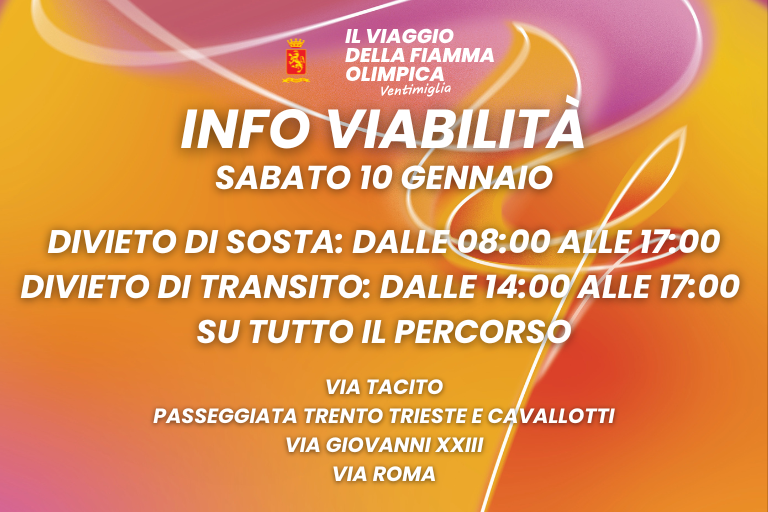 In vista del passaggio della Fiamma Olimpica, previsto per sabato 10 gennaio 2026, si informa che il Comandante della Polizia Locale ha emesso apposita ordinanza di viabilità per disciplinare la sosta e il transito veicolare in occasione della manifestazione sportiva.
