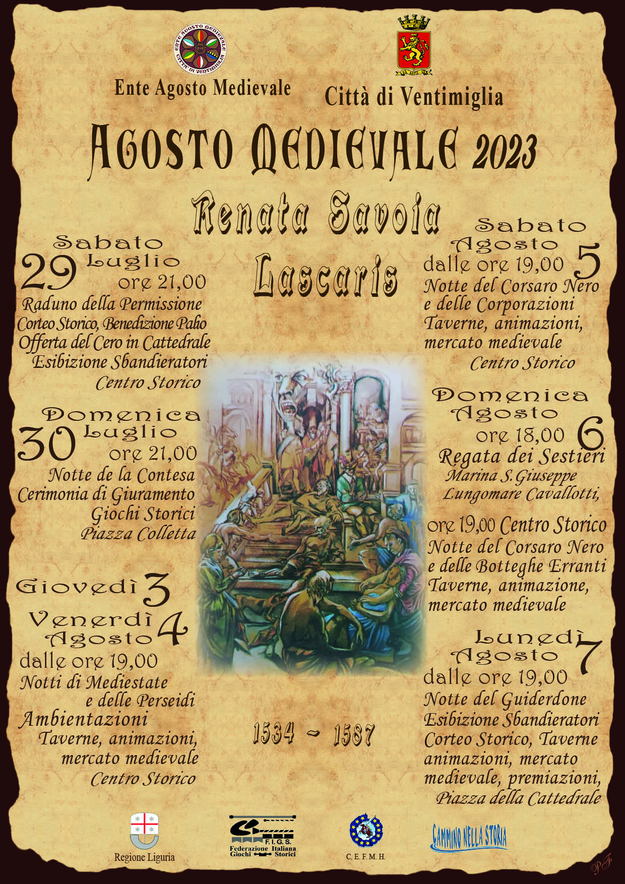 Descrizione Città di Ventimiglia - Agosto medievale 2023 Allegati Documenti Locandina [.jpg 1,14 Mb - 27/07/2023] A cura di Turismo Ultimo aggiornamento pagina: 27/07/2023 14:57:01