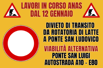 Dal 12 Gennaio chiusa la SS1 Aurelia – Dir Balzi Rossi - per l’avvio dei lavori di ANAS sulle gallerie