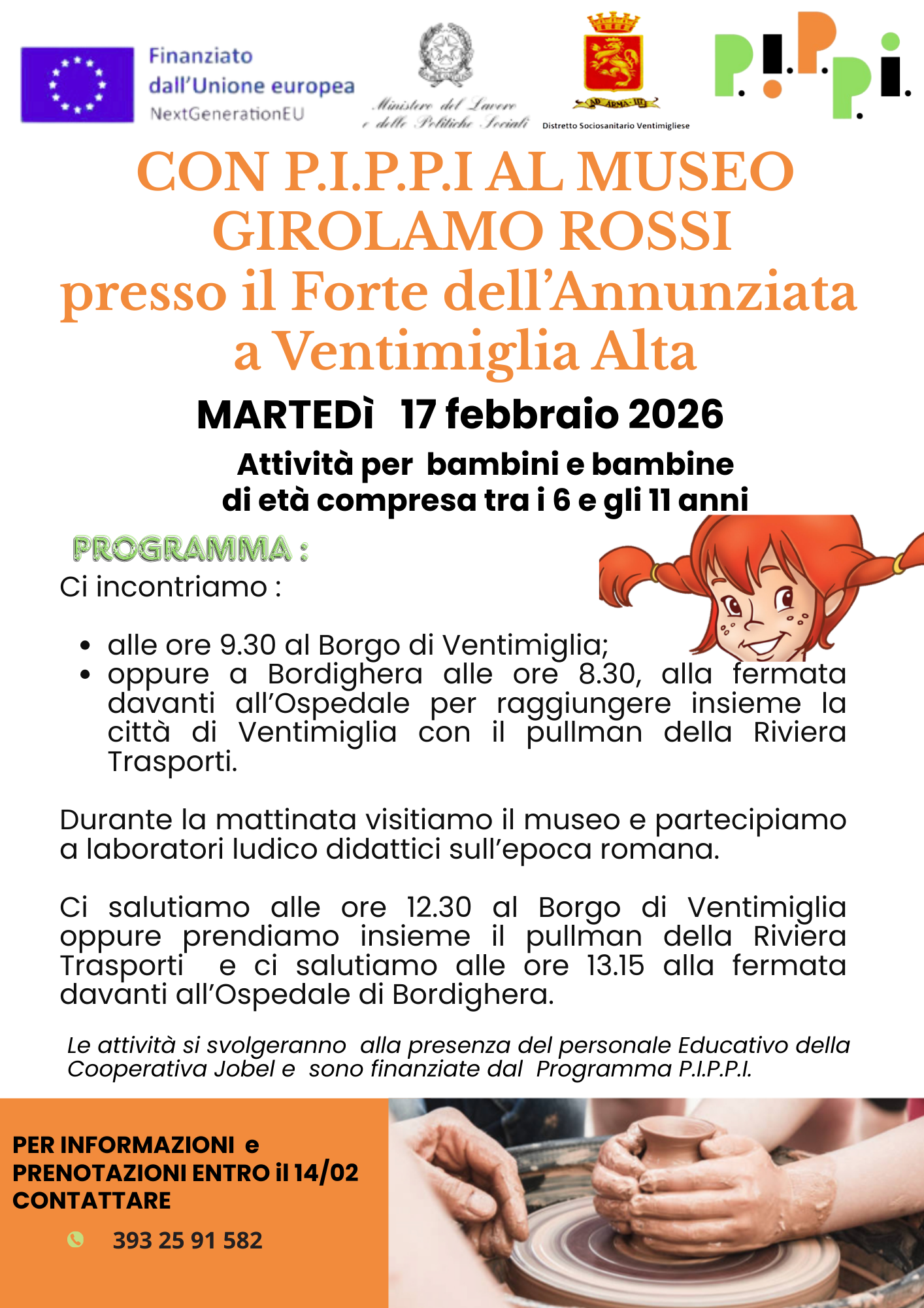 Invitiamo le famiglie a partecipare alle iniziative organizzate per martedì 17 febbraio. È necessaria la prenotazione ai numeri indicati. Le attività sono finanziate dal Programma PIPPI - PNRR