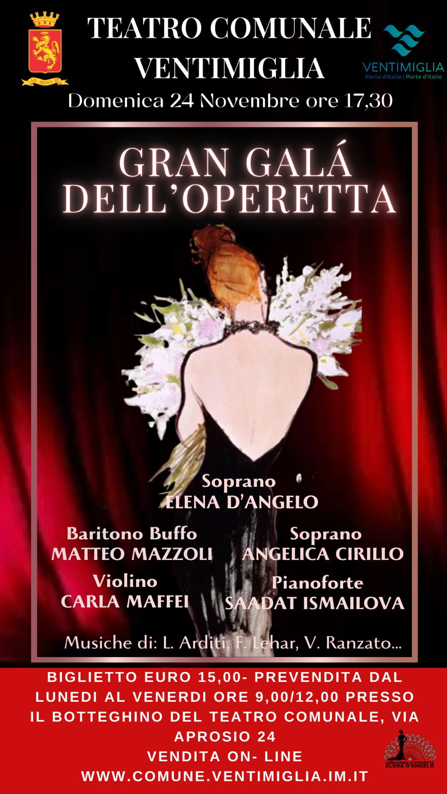 Gran Gala' dell'Operetta - Domenica 24 novembre ore 17.30 - Teatro Comunale Ventimiglia