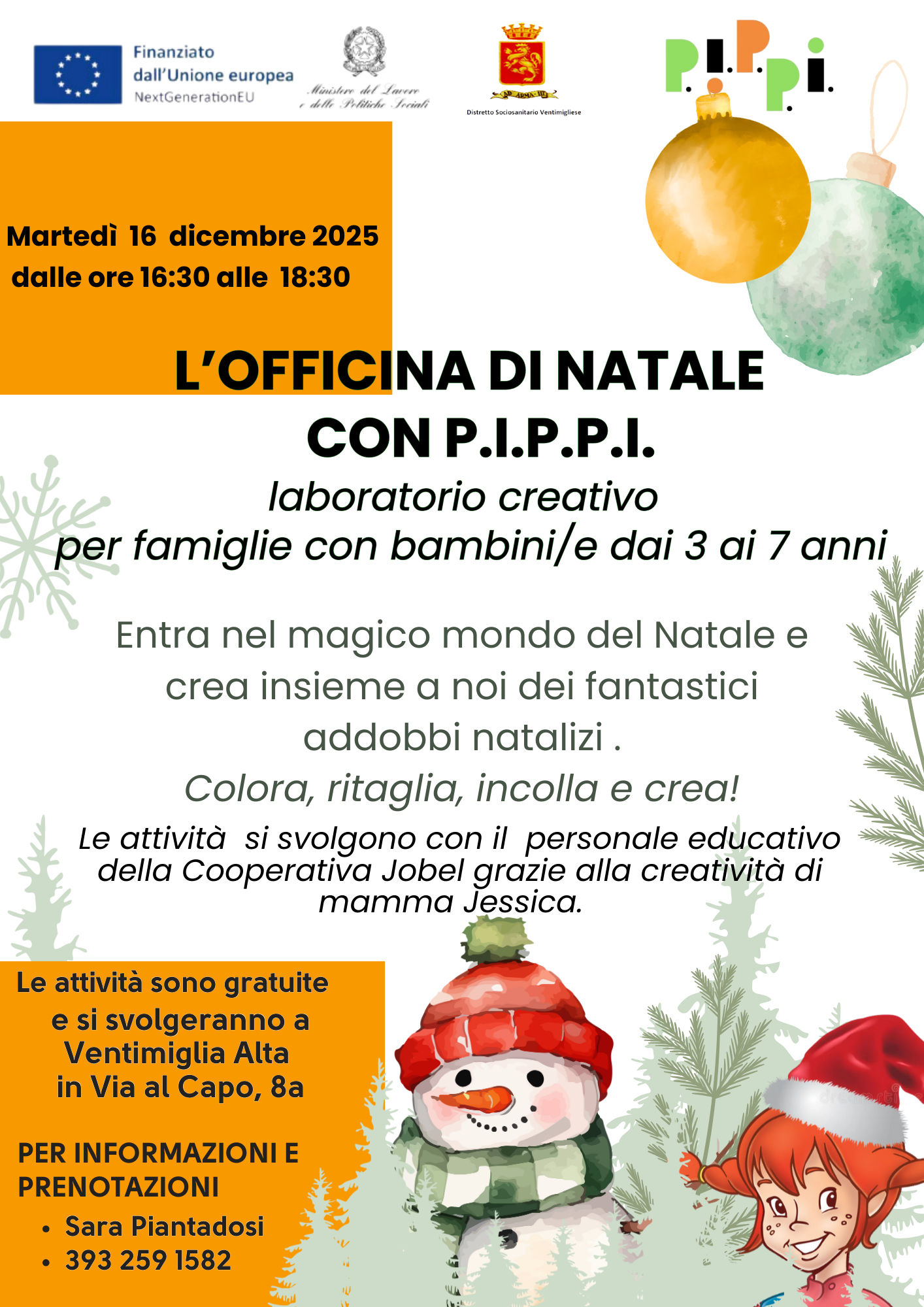 Abbiamo organizzato una nuova attività grazie ai fondi del Programma PIPPI PNRR. Invitiamo le famiglie a partecipare martedì 16 dicembre a Ventimiglia Alta.