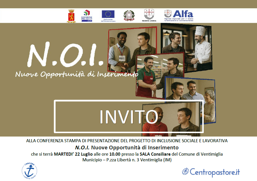 E' stato presentato il progetto NOI – Nuove Opportunità di Inserimento, frutto del protocollo d’intesa tra il Comune di Ventimiglia e il Centro Pastore.