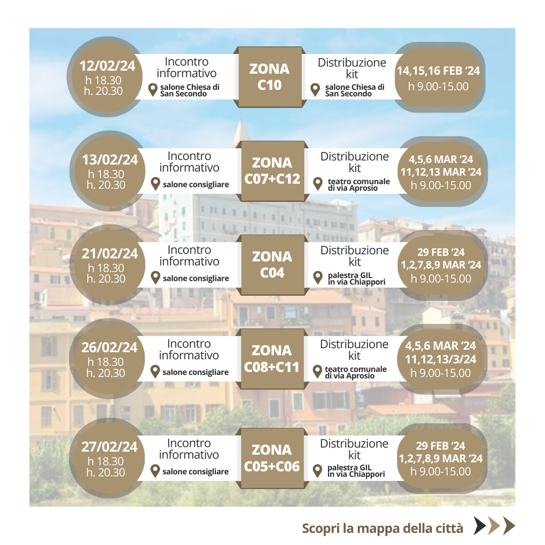 Nei giorni scorsi, quindi, è iniziata, presso tutte le utenze interessate, la distribuzione del volantino illustrativo contenente tutte le informazioni necessarie sulle date relative agli incontri informativi e di ritiro dei nuovi kit per gli utenti.