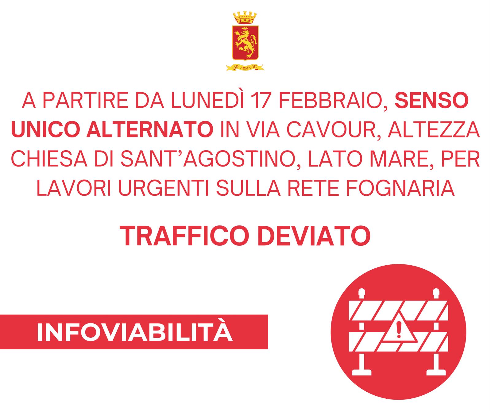 È istituito divieto di sosta su Via Cavour dal civico 38 al civico 44, da Lunedì 3 febbraio fino al termine dei lavori.