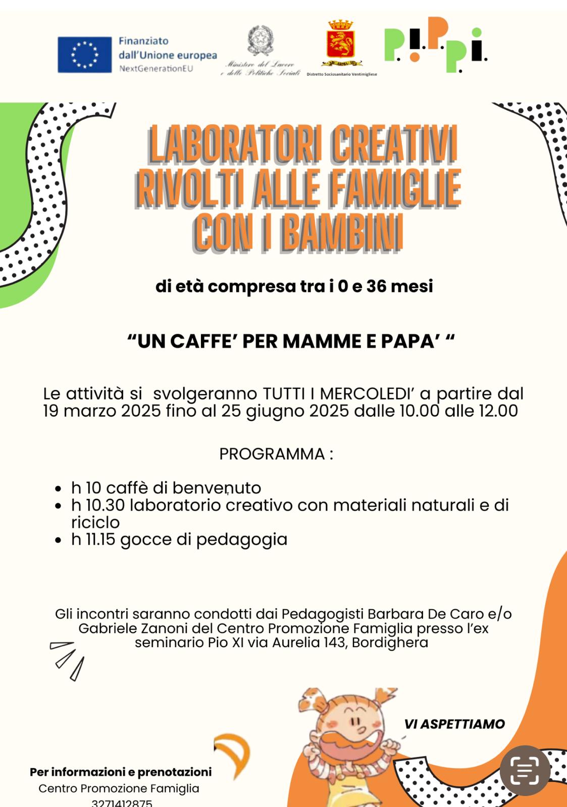 "Un caffè per mamme e papà" Le attività si svolgeranno tutti i mercoledì a partire dal 19 Marzo 2025 fino al 25 Giugno 2025 dalle 10.00 alle 12.00