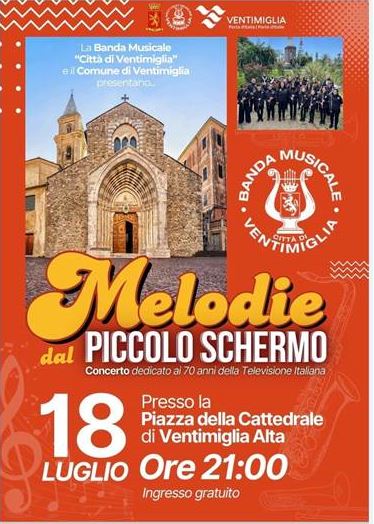 Giovedì 18 luglio alle ore 21.00, nella meravigliosa cornice della Piazza della Cattedrale di Ventimiglia Alta, si aprirà la stagione estiva della storica Banda Musicale “Città di Ventimiglia”. Il concerto, che inizialmente doveva tenersi all’interno del nuovo porto, sarà un viaggio tra i grandi classici delle colonne sonore, per festeggiare i 70 anni della televisione italiana. Una serata, sotto le stelle, ricca di melodie che porteranno grandi e piccini a spasso nel tempo per rilassarsi e divertirsi. Brani di grandi compositori interpretati con la passione e la maestria che contraddistinguono i musicanti della Banda Musicale “Città di Ventimiglia”. Evento gratuito ad ingresso libero.