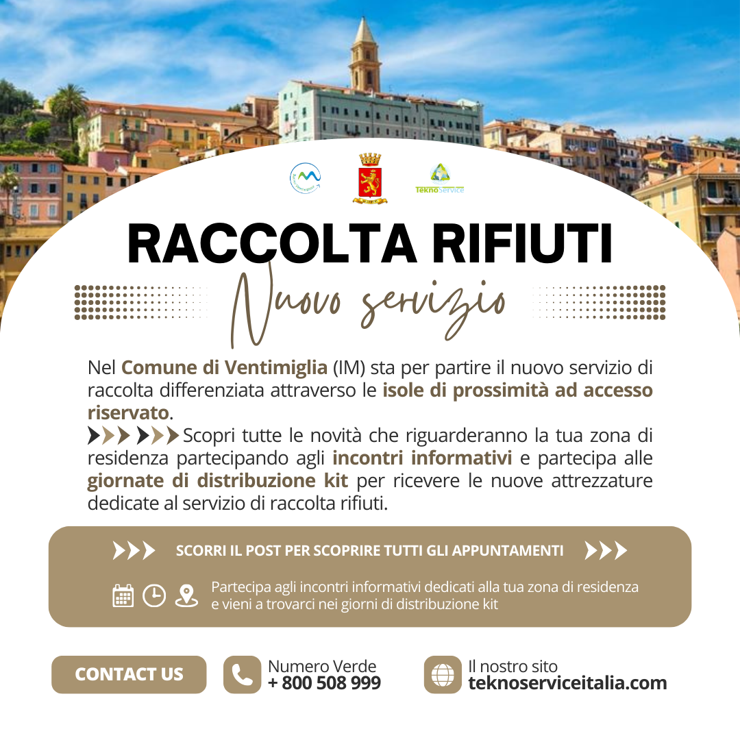 PARTE LA RACCOLTA DIFFERENZIATA IN TUTTO IL CENTRO DELLA CITTÀ DI VENTIMIGLIA AL VIA GLI INCONTRI INFORMATIVI E LA DISTRIBUZIONE DEI NUOVI KIT